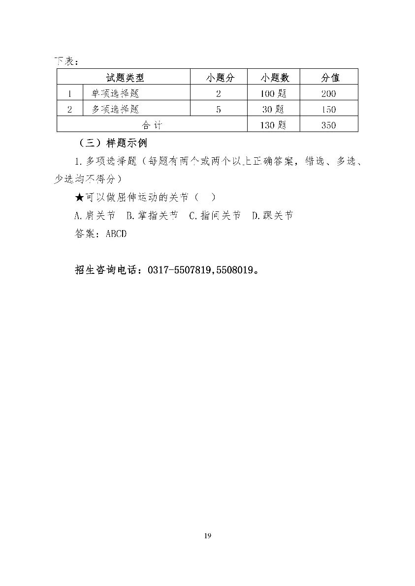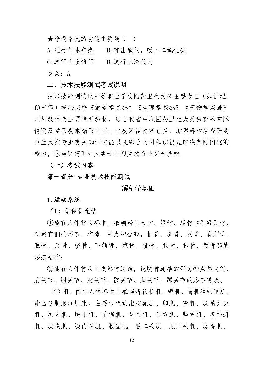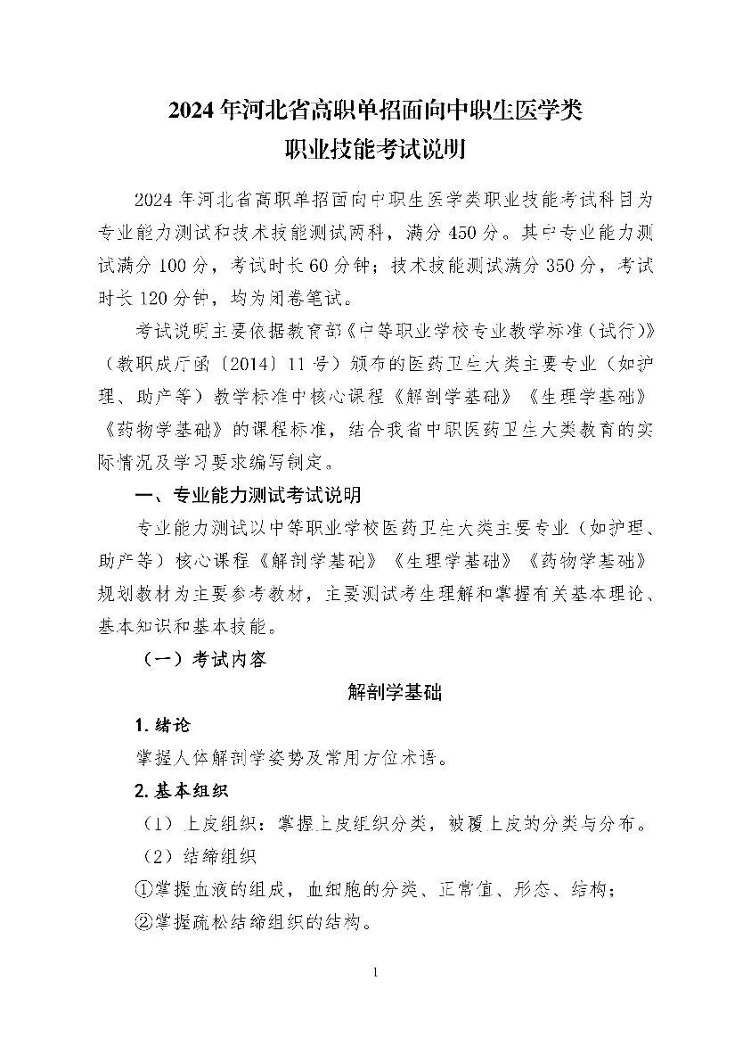 2024年河北省高职单招考试 (医学类)考试大纲