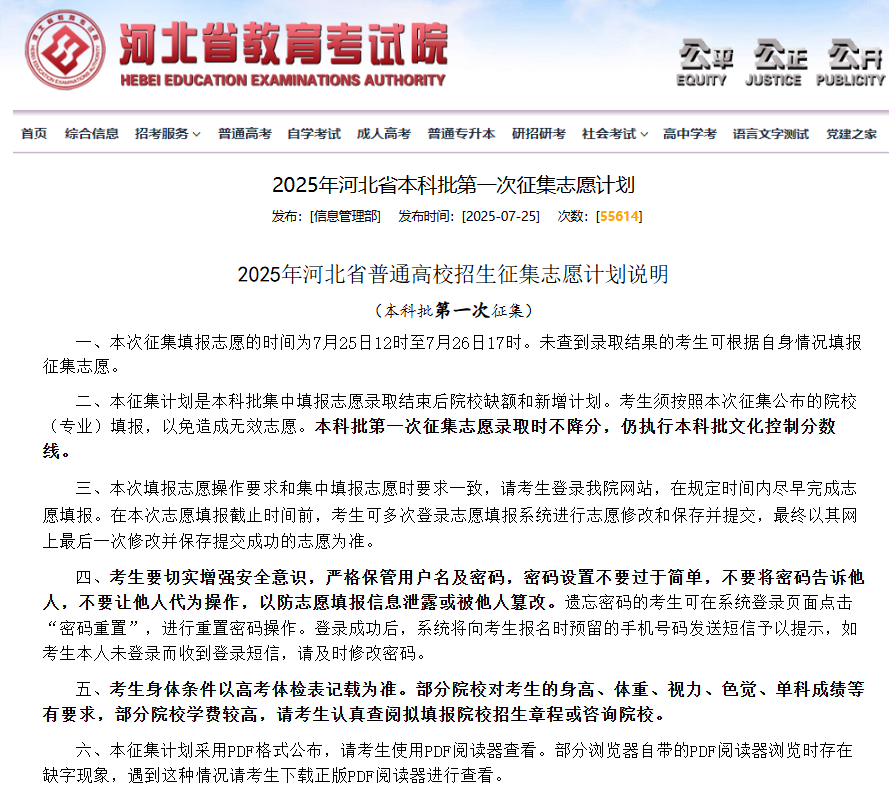【官方发布】2025年河北省本科批第一次征集志愿计划 二维码