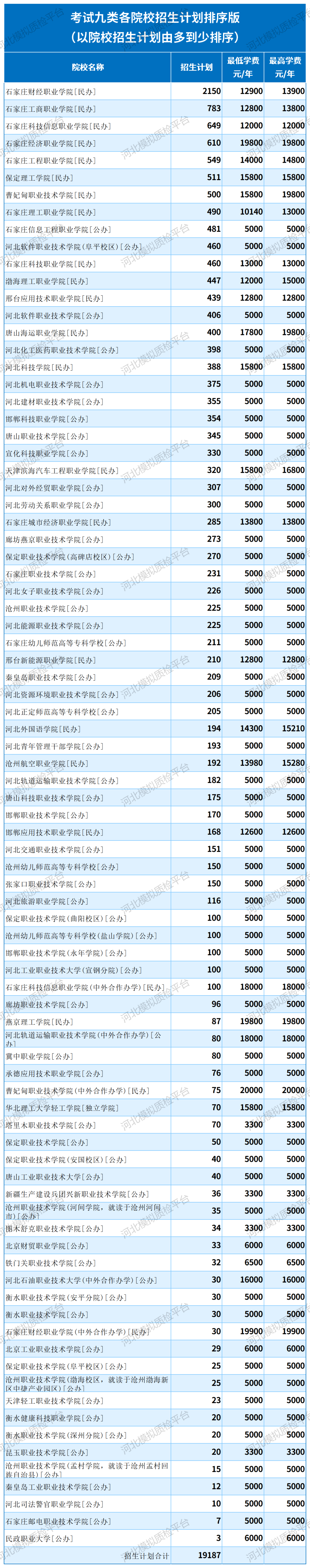 2025年河北高职单招各院校招生计划排序汇总-考试九类 二维码