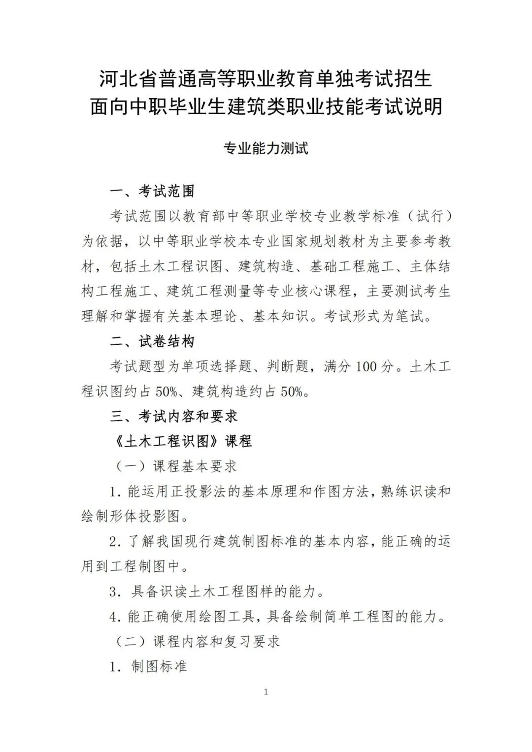 建筑类 | 2026年河北单招考试面向中职毕业生职业技能考试说明 二维码