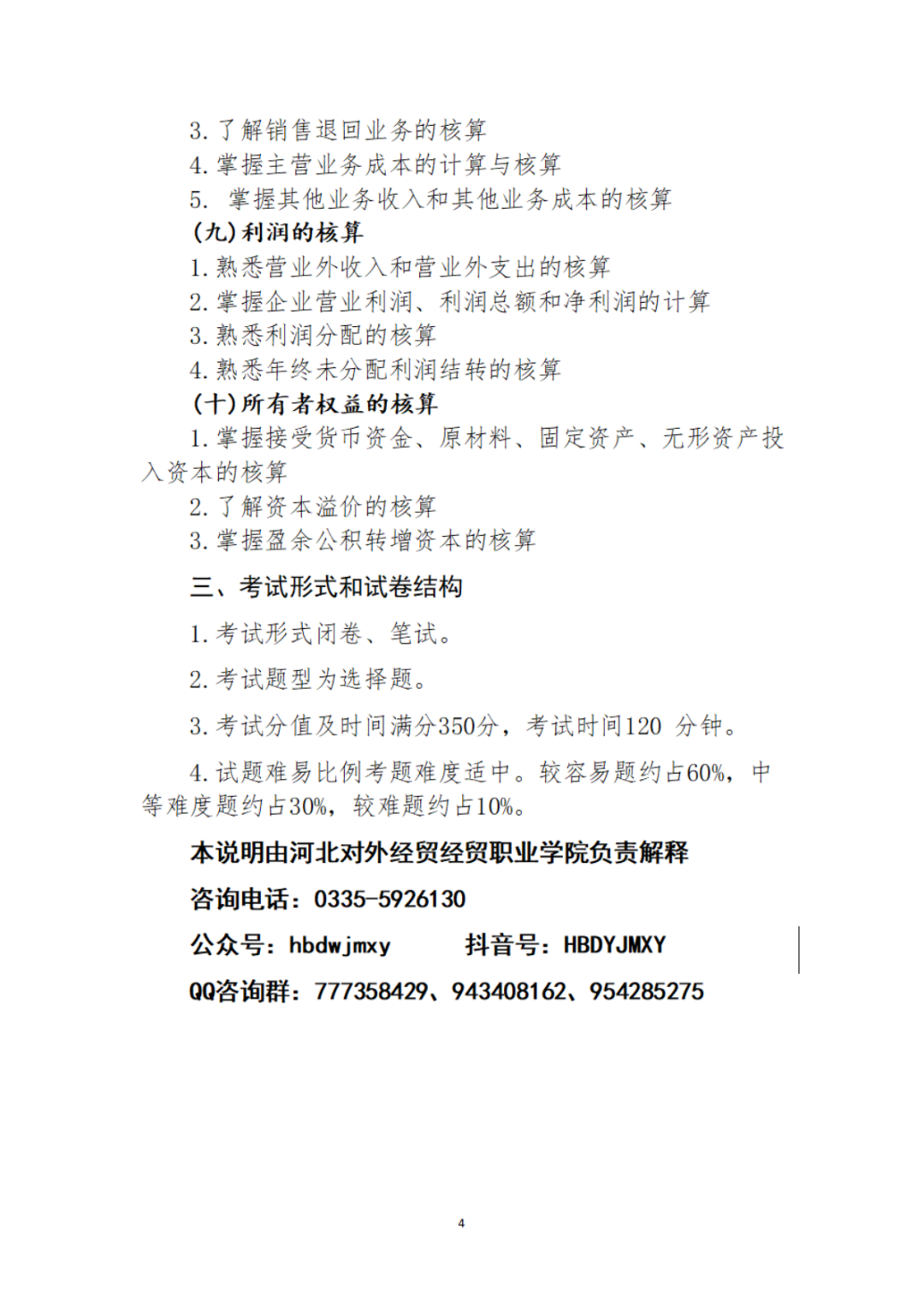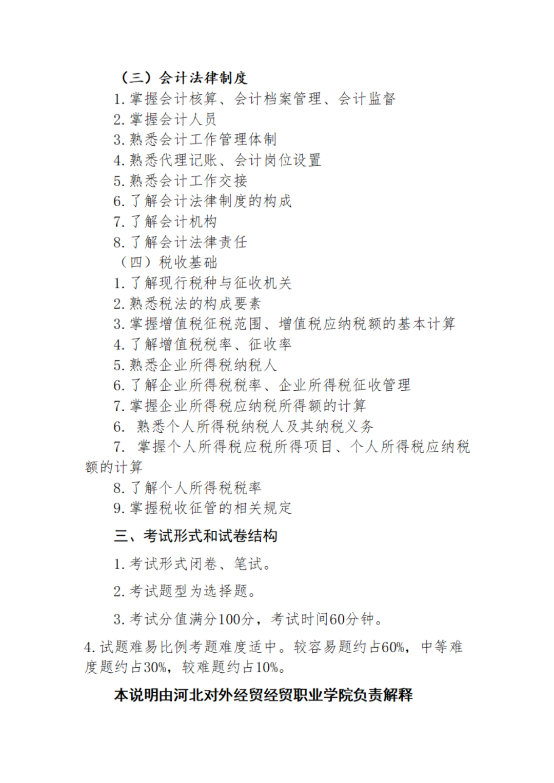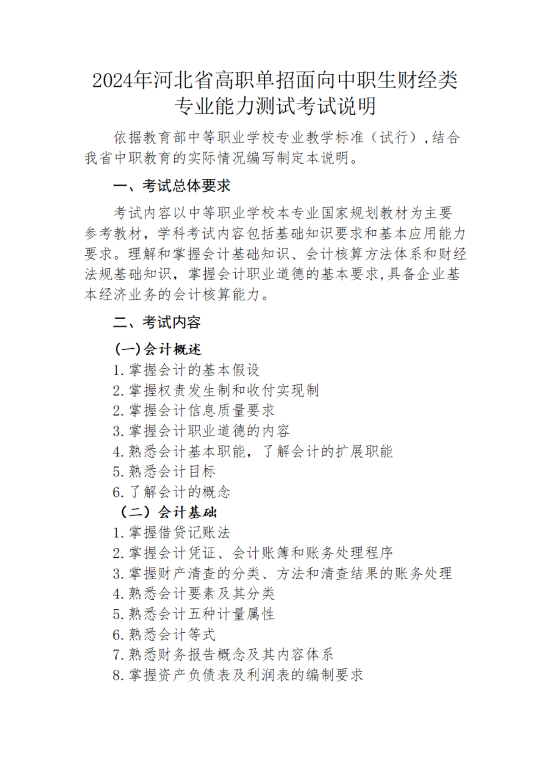 2024年河北省高职单招考试 (财经类)考试大纲