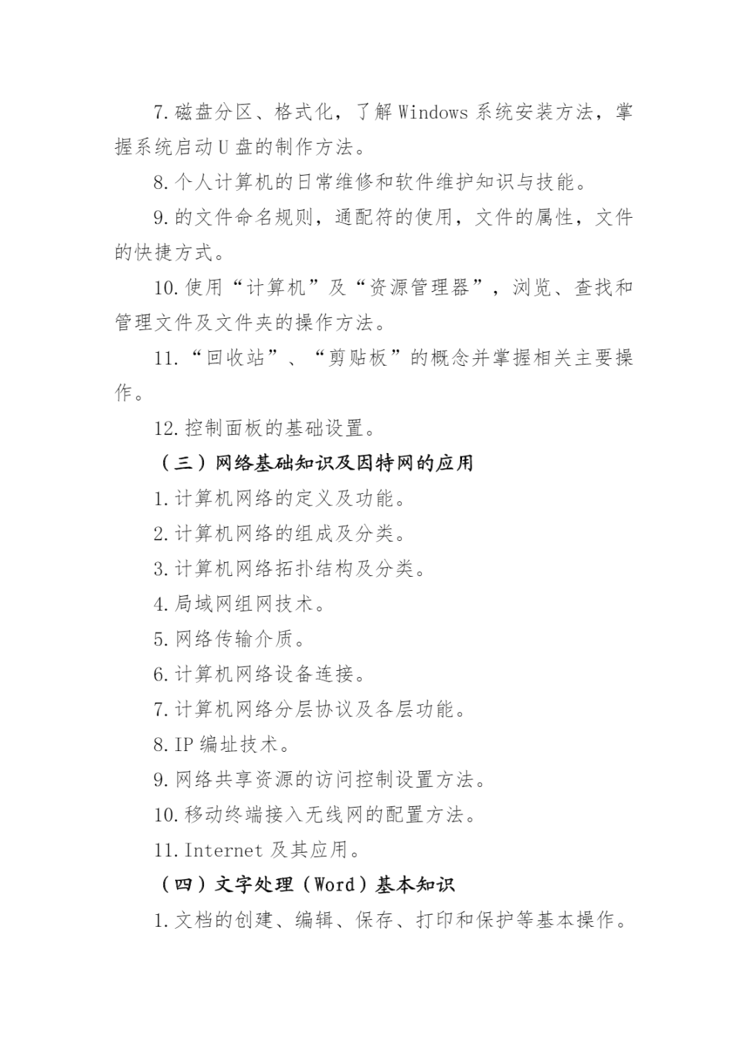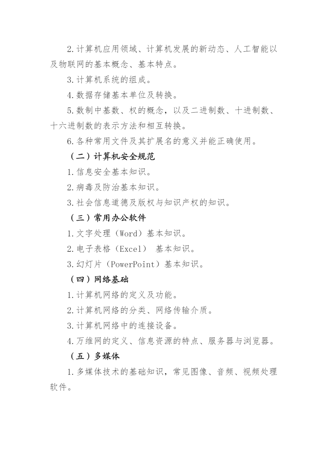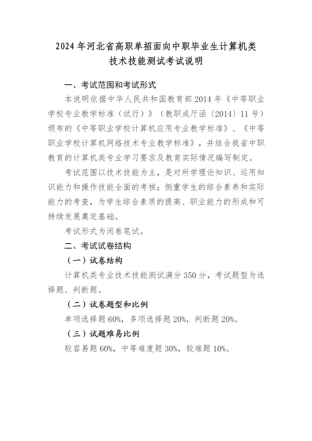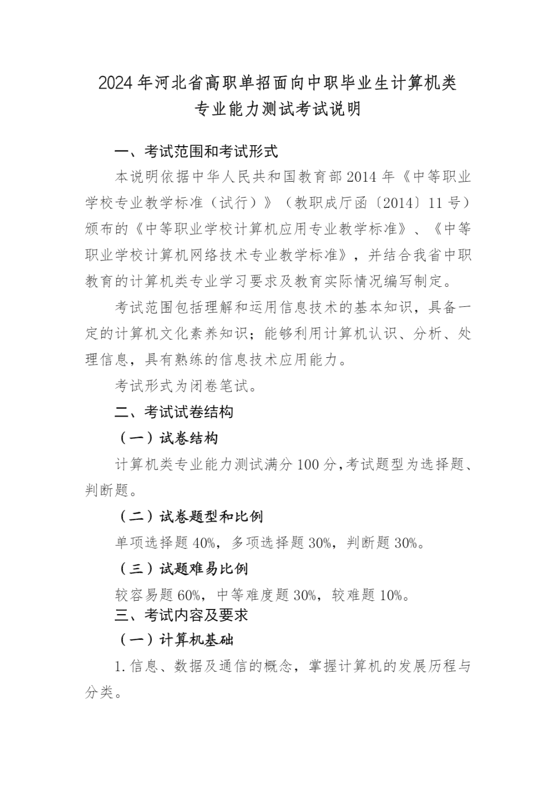 2024年河北省高职单招考试 (计算机类)考试大纲