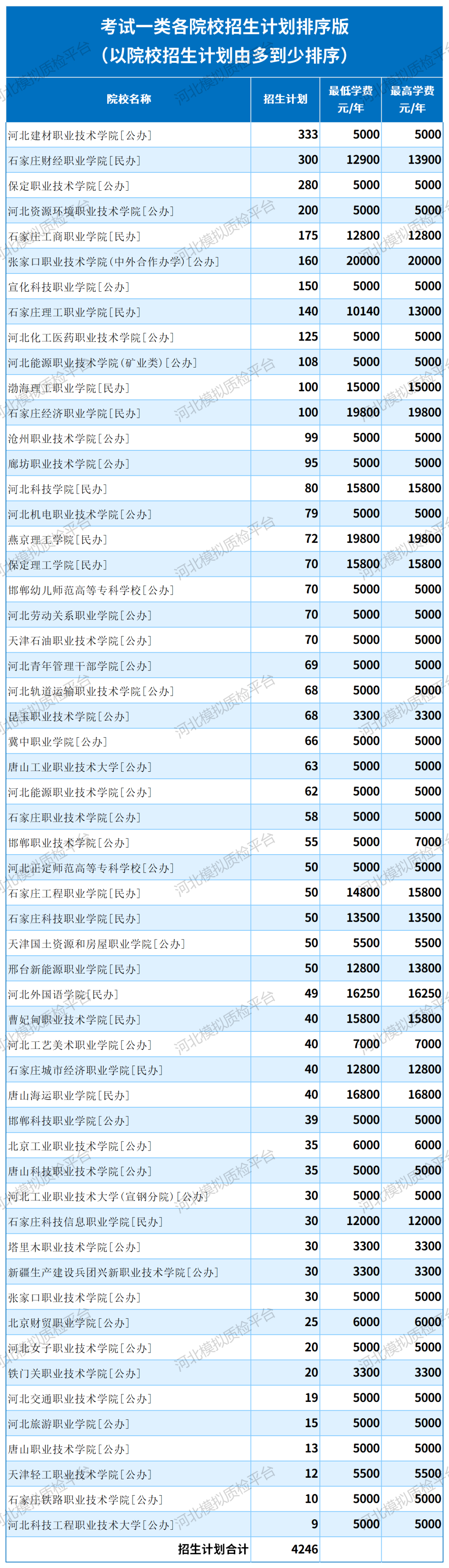 2025年河北高职单招各院校招生计划排序汇总-考试一类 二维码