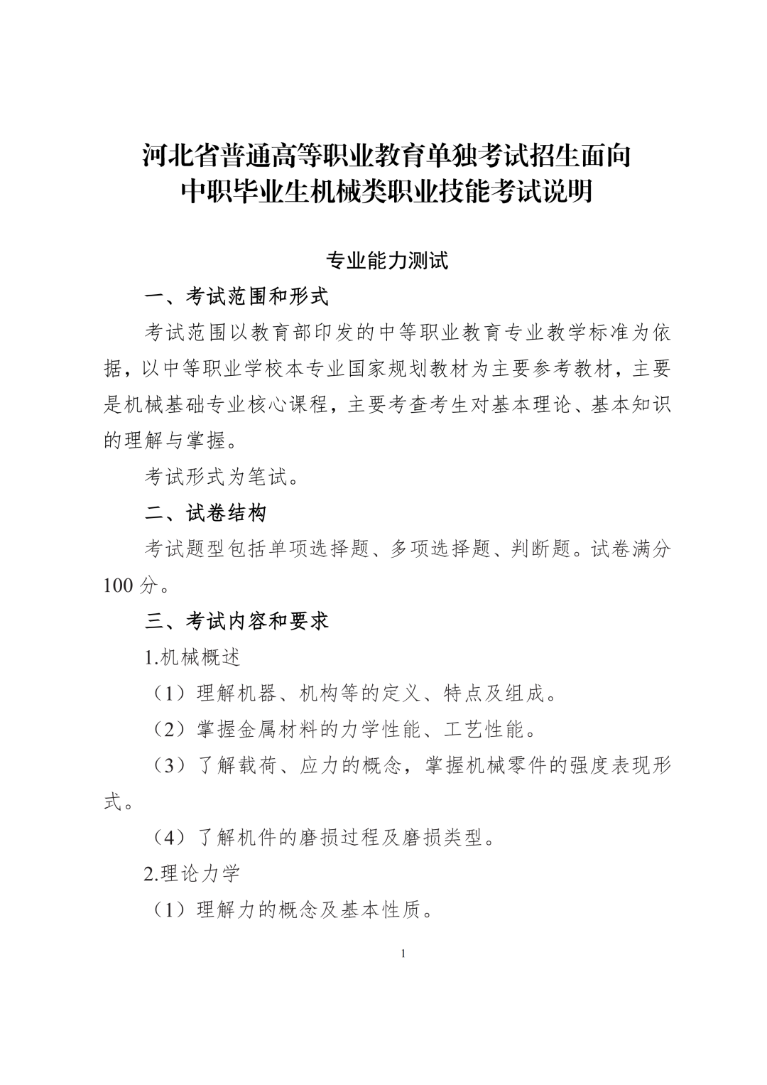 2027年河北单招面向中职毕业生(机械类)职业技能考试说明 二维码